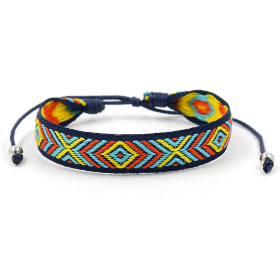 Bransoletka z poliestru w stylu etnicznym ze wzorem w kształcie rombu - regulowana