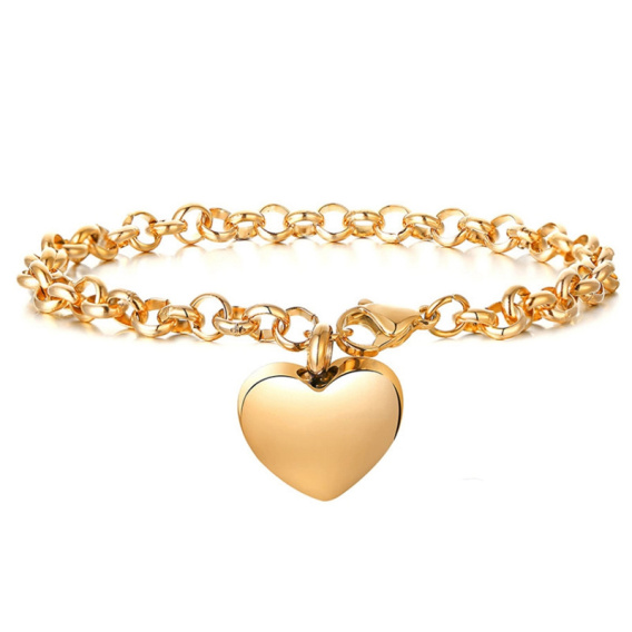 • Bransoletka serce, złota, stal chirurgiczna, 21cm, urna.