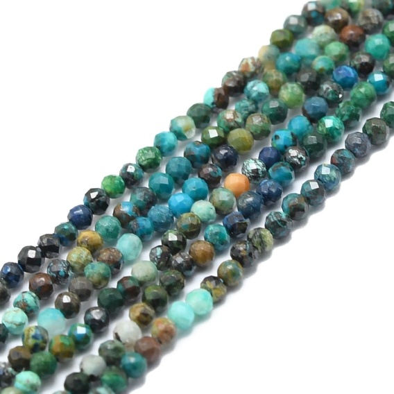 Chryzokola, koraliki, okrągłe 2mm, fasetowane, 215szt. (sznur)