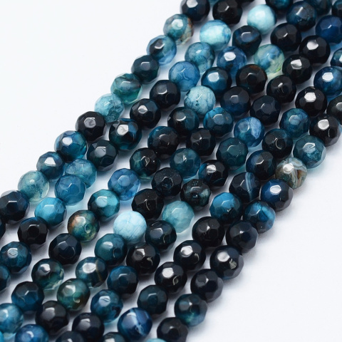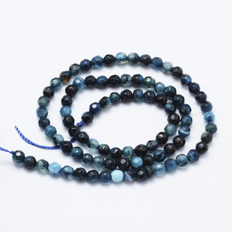 Koraliki agat, błękit pruski, 4mm, 5 szt