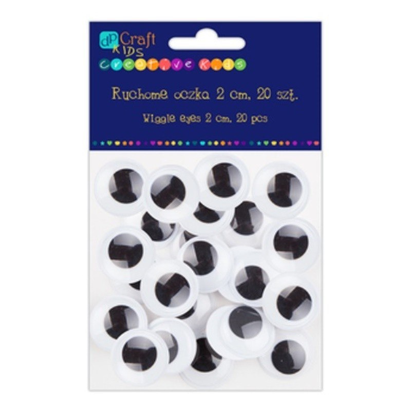 Ruchome oczka Dalprint KSOC-034/20mm/20 szt.- czarno - białe Ruchome oczka znakomicie nadają się do wszelkiego rodzaju dziecięcej aktywności twórczej. Można nimi ozdobić własnoręcznie wykonaną lalkę, zwierzątko lub inną postać. Służą także do dekorowania m.in. kartek okolicznościowych, zaproszeń, dyplomów, zdjęć, zakładek do książek a także wielu innych. Doskonale sprawdzają się w do wszelkiego rodzaju prac astystycznych, cardmakingu, scrapbookingu oraz wielu innych technikach kreatywnych. kształt: okrągłe, kolor: czarno-białe, ilość w opakowaniu: 20szt, rozmiar: 20 mm.