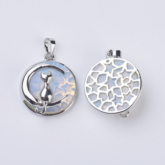 Zawieszka Kot na księżycu, opalit i mosiądz, 32 x 27.5 x 10 mm